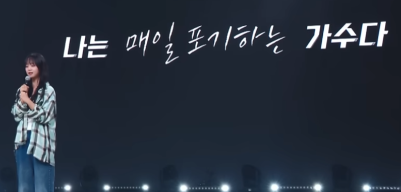 공원의 수식어인 "매일 포기하는 가수"는 부정적인 의미가 아니에요. 오히려 그 반대죠!